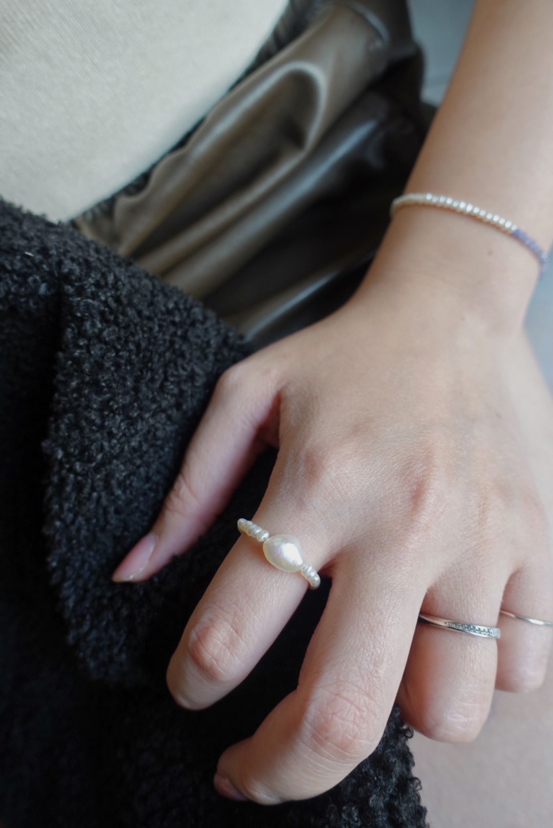巴洛克珍珠彈性珠戒