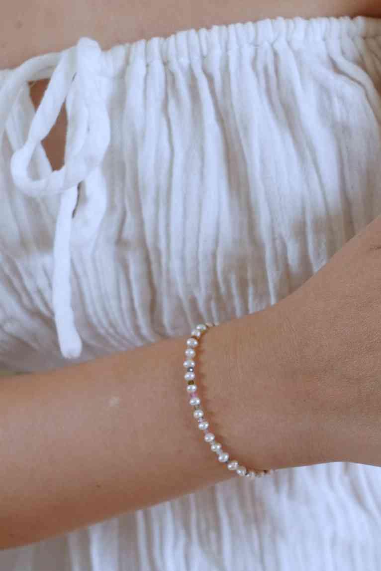 可以碰水洗手,有搭配天然石的飾品不建議帶著洗澡。