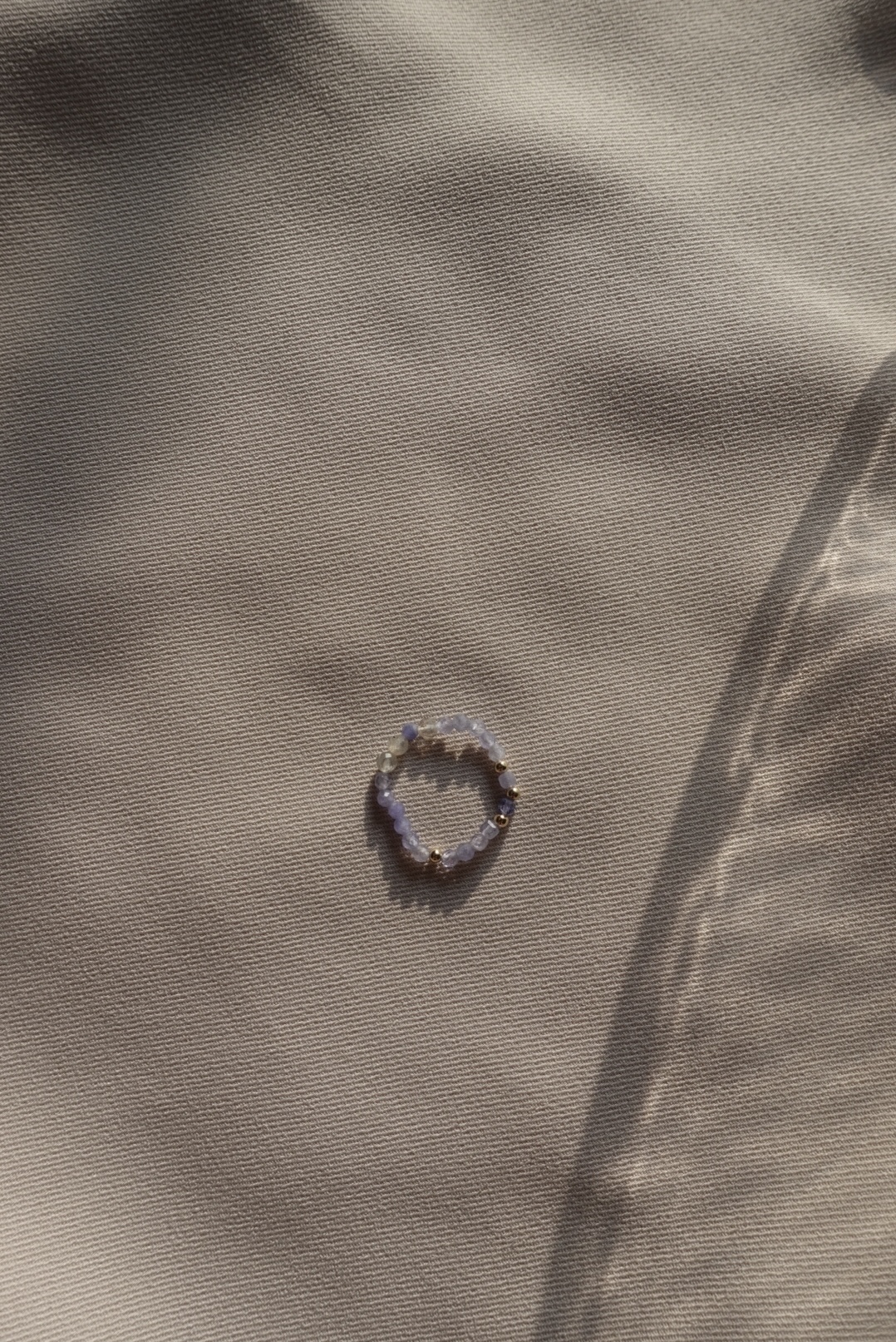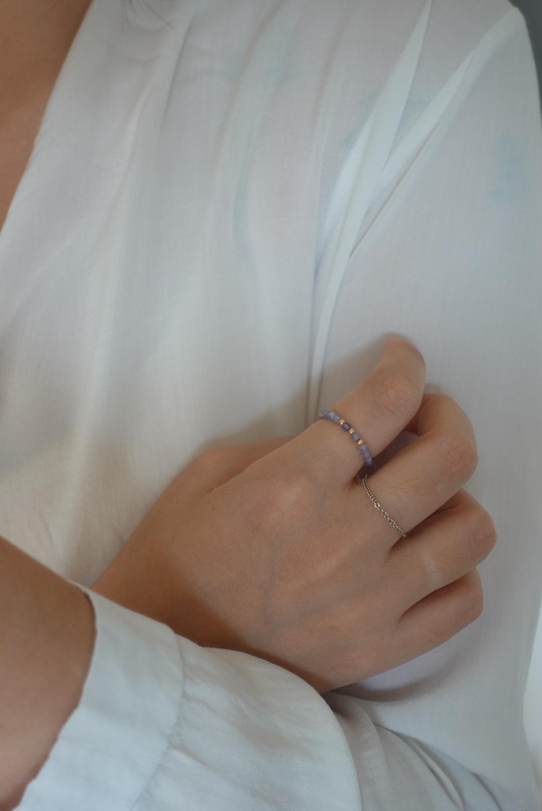細扁珍珠 方塊天然石彈性珠戒 14KGF