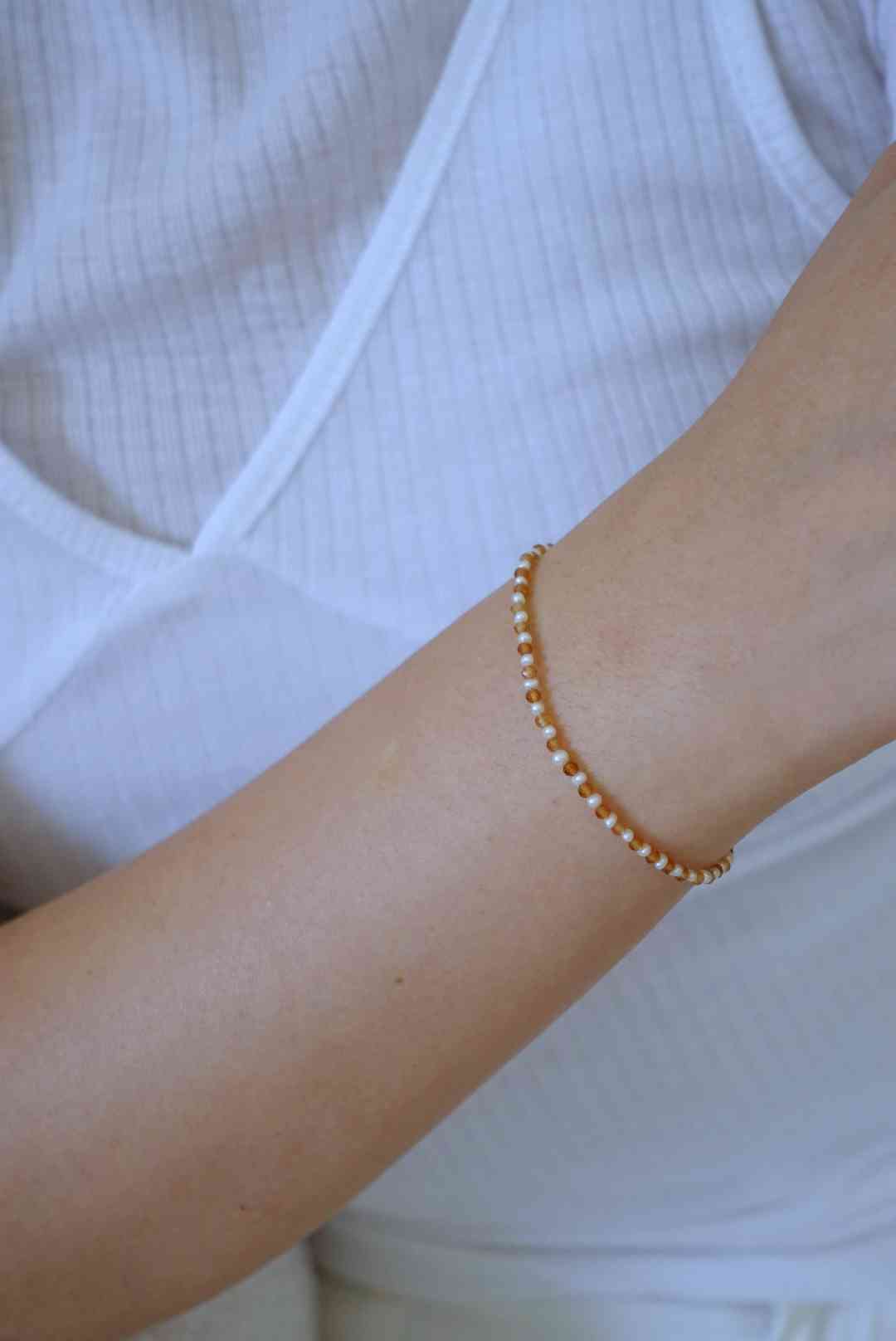 可以碰水洗手,有搭配天然石的飾品不建議戴著洗澡。