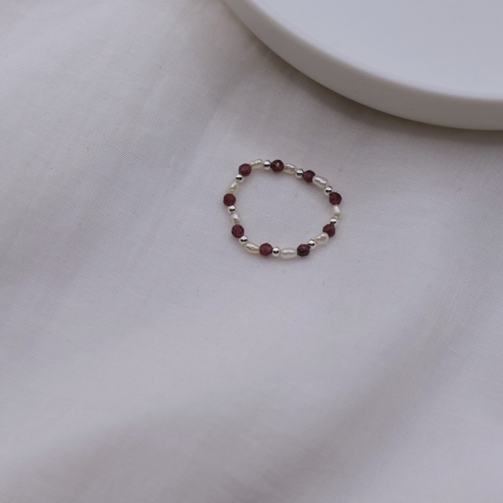 ⸝ 材質 ⸝石榴石巴洛克珍珠S925純銀⸝ 尺寸規格 ⸝使用彈性繩製作可備註戒圍會更合適配戴