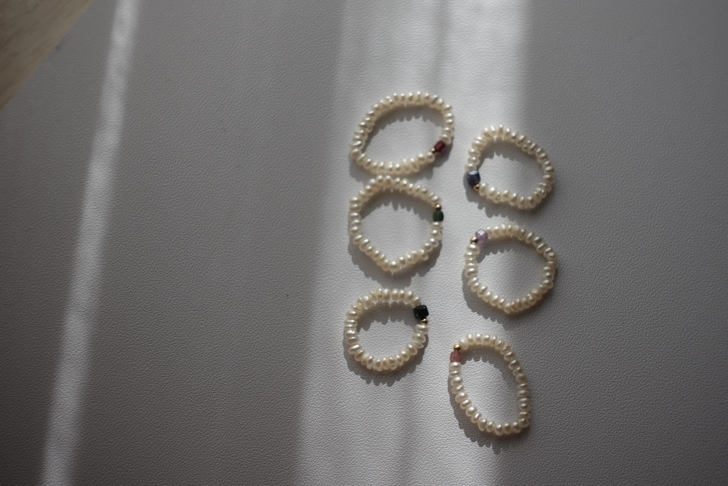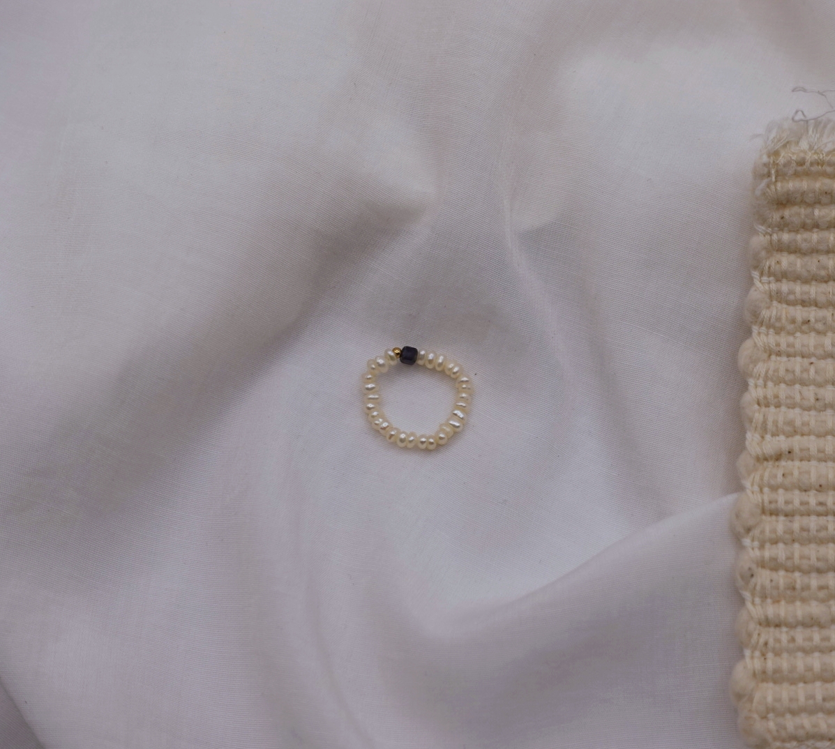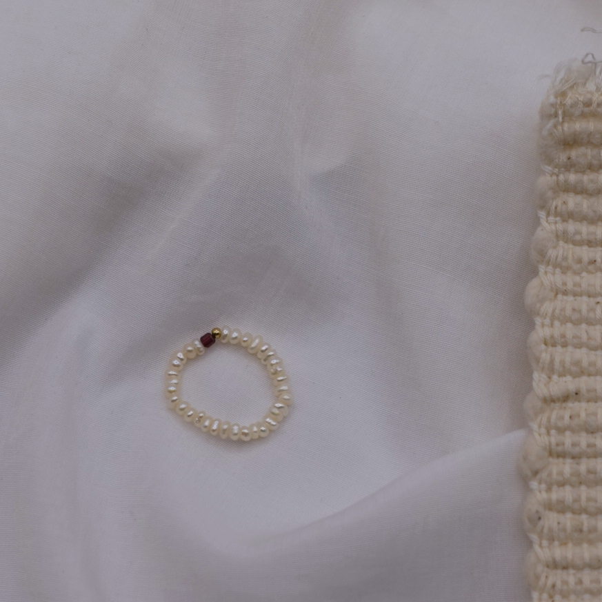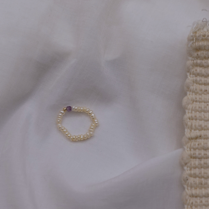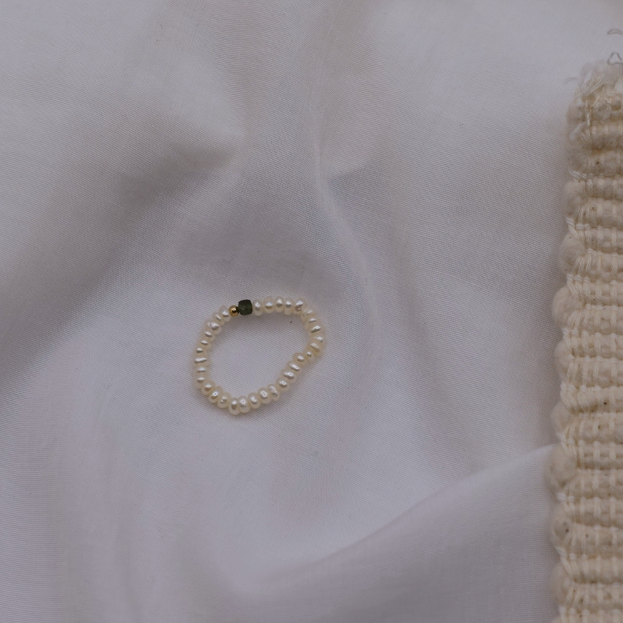 細扁珍珠 方塊天然石彈性珠戒 14KGF