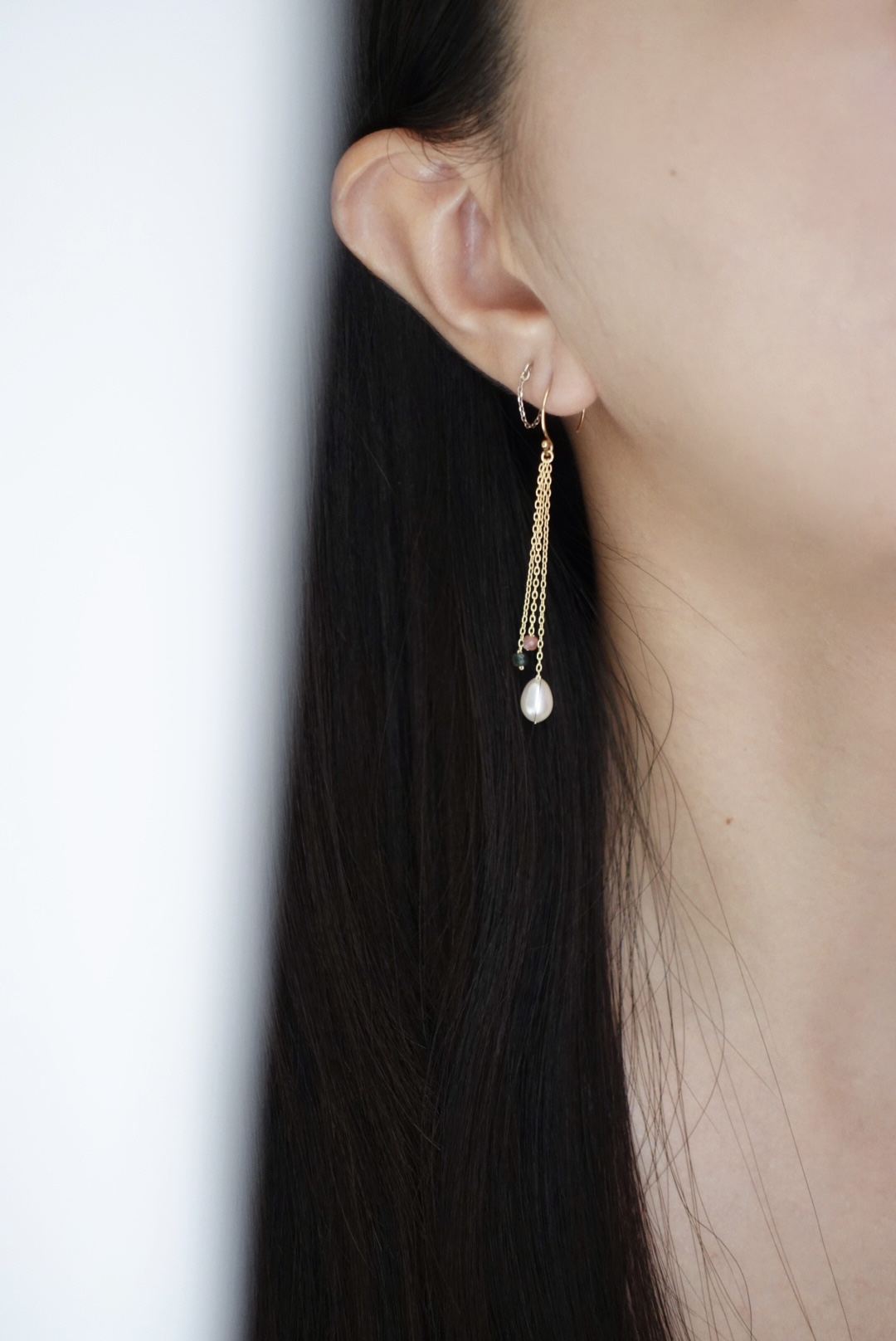 珍珠後掛流蘇耳環 S925